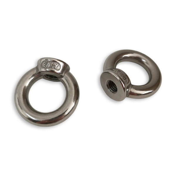 Pattern 582 eye nuts manufactured from A4 (316) marine grade stainless steel. These are made to the same pattern as DIN 582 but are not manufactured for use with lifting equipment, slings or load support devices. They are not stamped with a CE marking or safe working load limit.