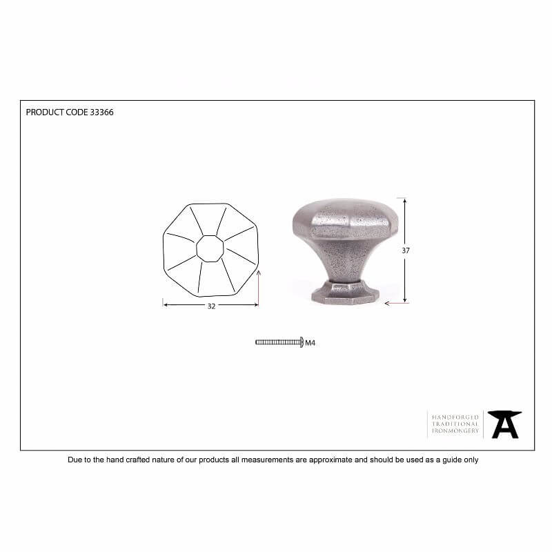 Anvil 33366 Nat. Smooth Octagonal Knob Small