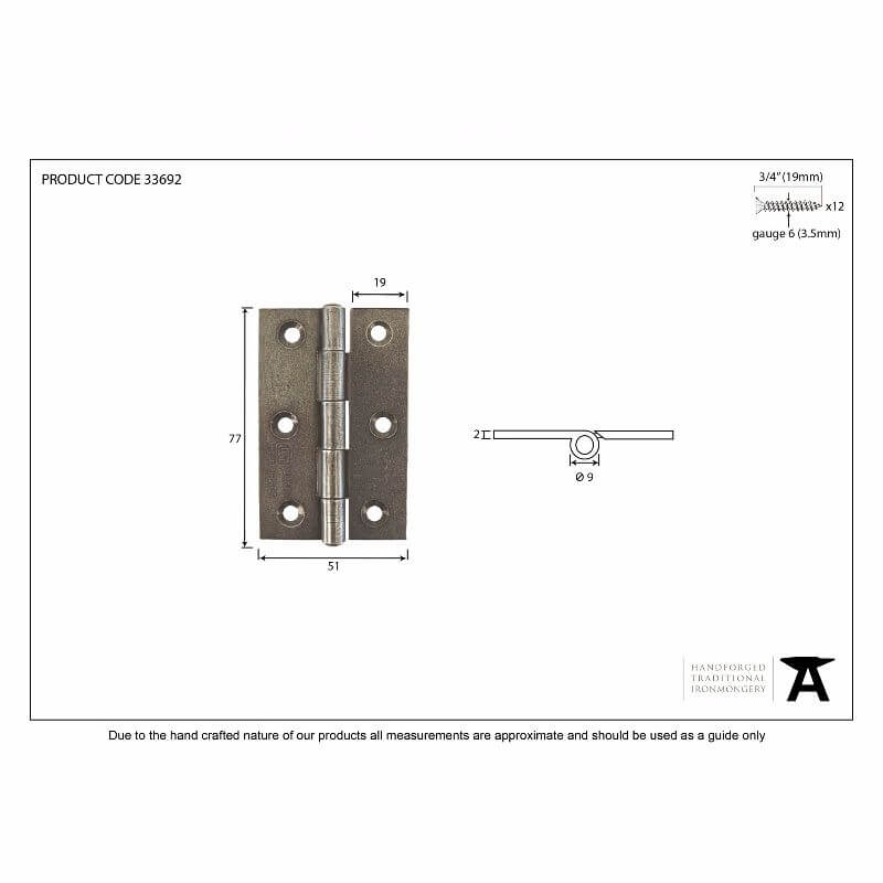 Anvil 33692 Pewter 3'' Butt Hinge (Pair)