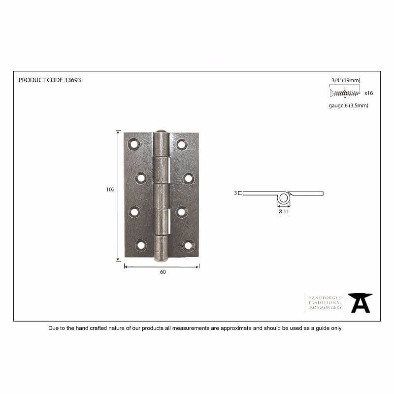 Anvil 33693 Pewter 4'' Hinge (Pair)
