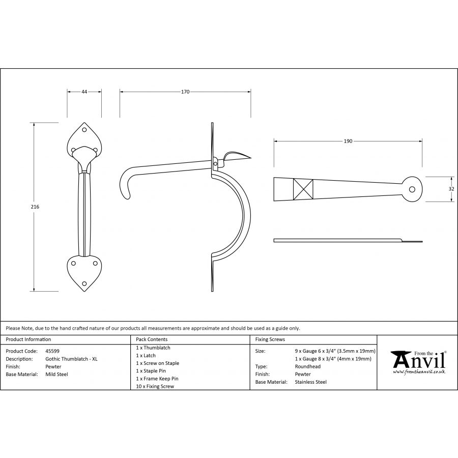 A thumb latch is traditionally used on a ledge and braced internal door. From The Anvil gothic thumb latches are a decorative thumb latch set ideal for period properties. When the thumb shaped lever is pressed down this operates a thumb bar which passes through the door, this lifts the latch bar on the opposite side causing it to open.