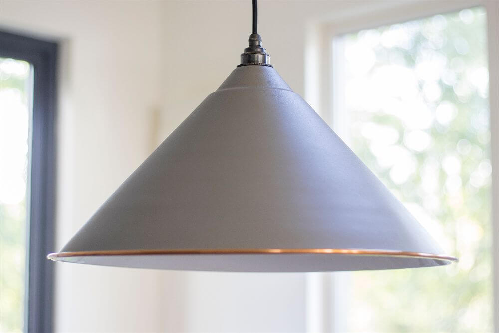 The hockley pendant echoes the yardley's sleek shape in a large and more dramatic size. It creates interest on its own and looks fantastic in a line.