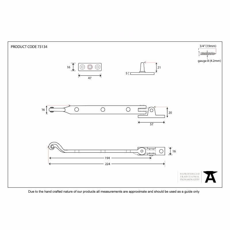 Anvil 73134 Antique Black 8'' Rose Head Casement Stay