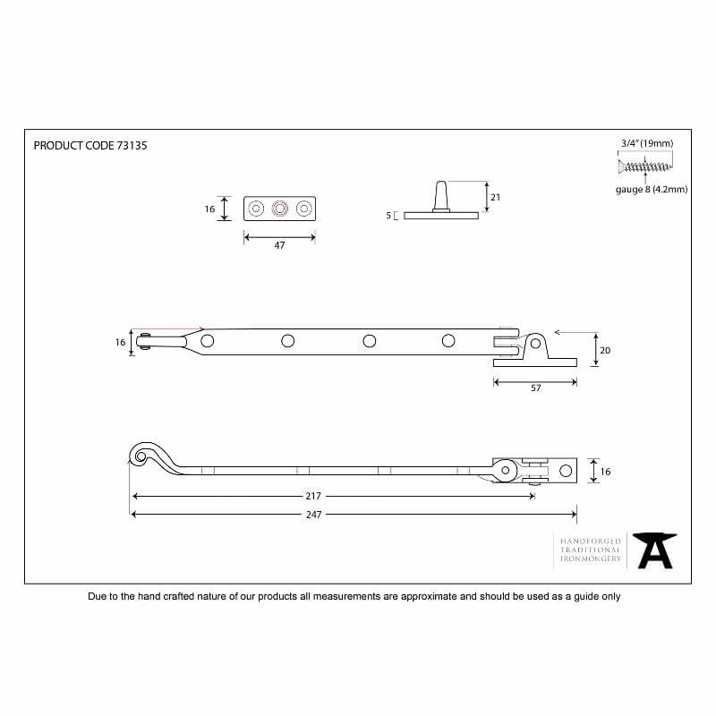 Anvil 73135 Antique Black 9'' Rose Head Casement Stay