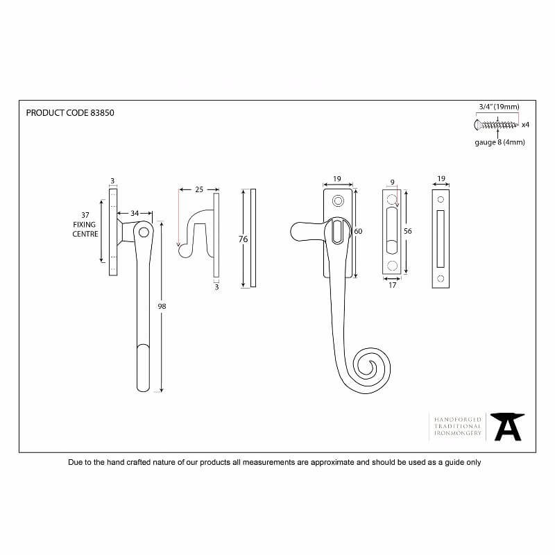 Anvil 83850 Antique Pewter Monkeytail Casement Fastener