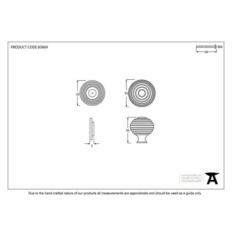 Anvil 83869 Ebony/PN Beehive Cabinet Knob 35mm