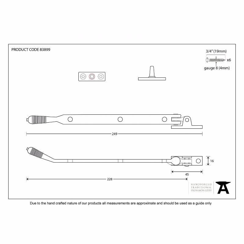 Anvil 83899 Aged Brass 8'' Reeded Casement Stay