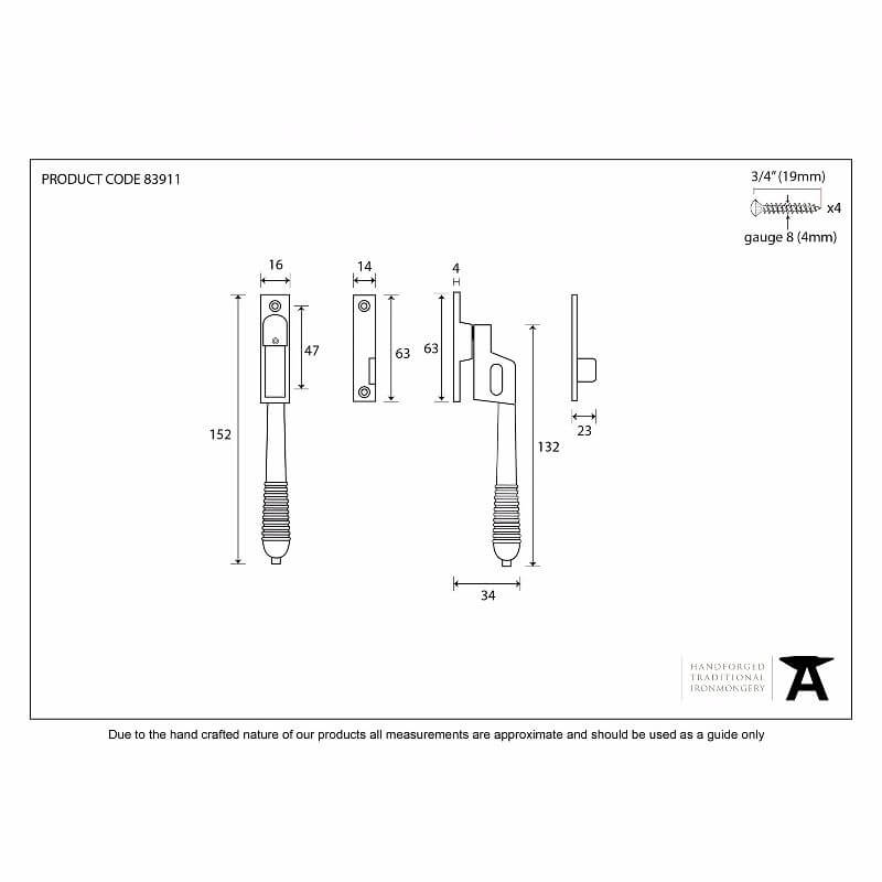 Anvil 83911 Aged Brass Night-Vent Reeded Casement Fastener