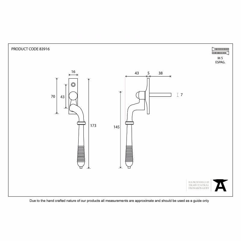 Anvil 83916 Polished Nickel Reeded Locking Window Espag RH