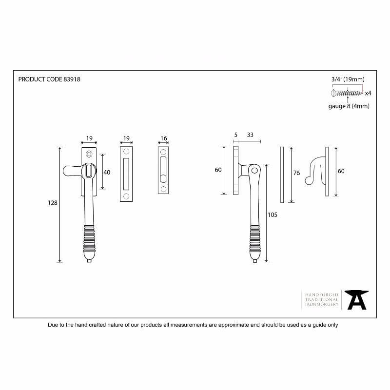 Anvil 83918 Polished Nickel Reeded Locking Casement Fastener