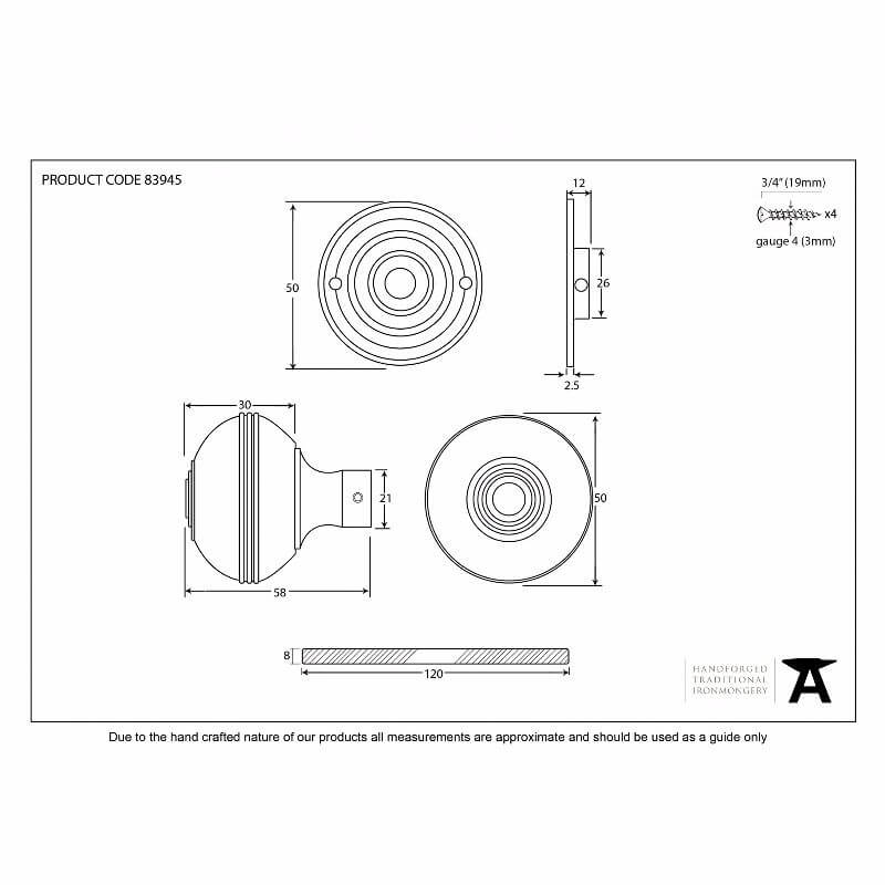 Anvil 83945 Aged Bronze 50mm Mortice/Rim Knob (Pair)