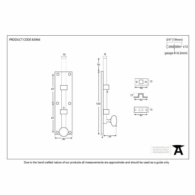• Fixing plate: 150 x 40mm, angled keep: 40 x 15mm
