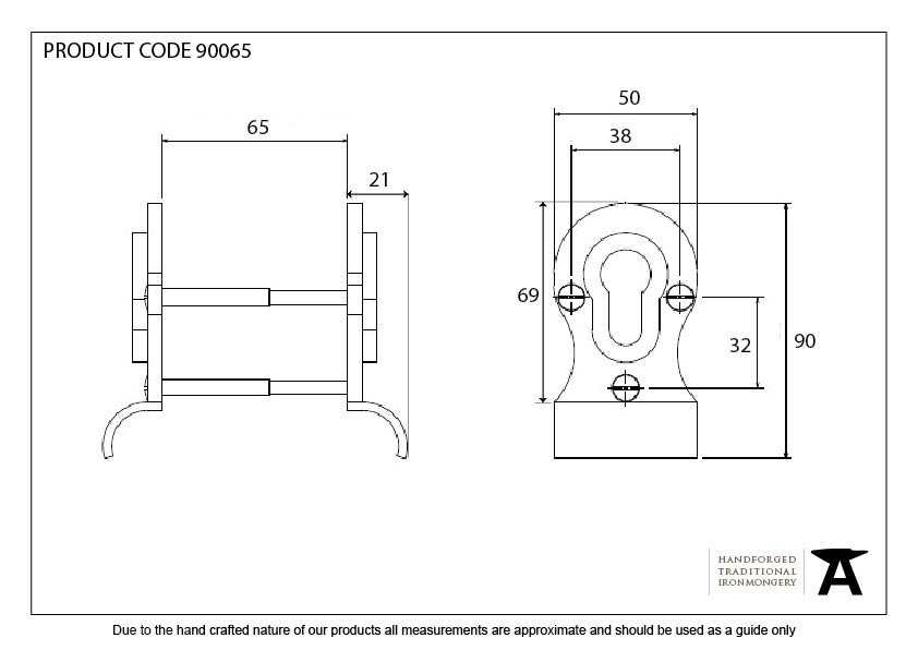 Anvil 90065 Aged Brass 50mm Euro Door Pull (Back to Back )
