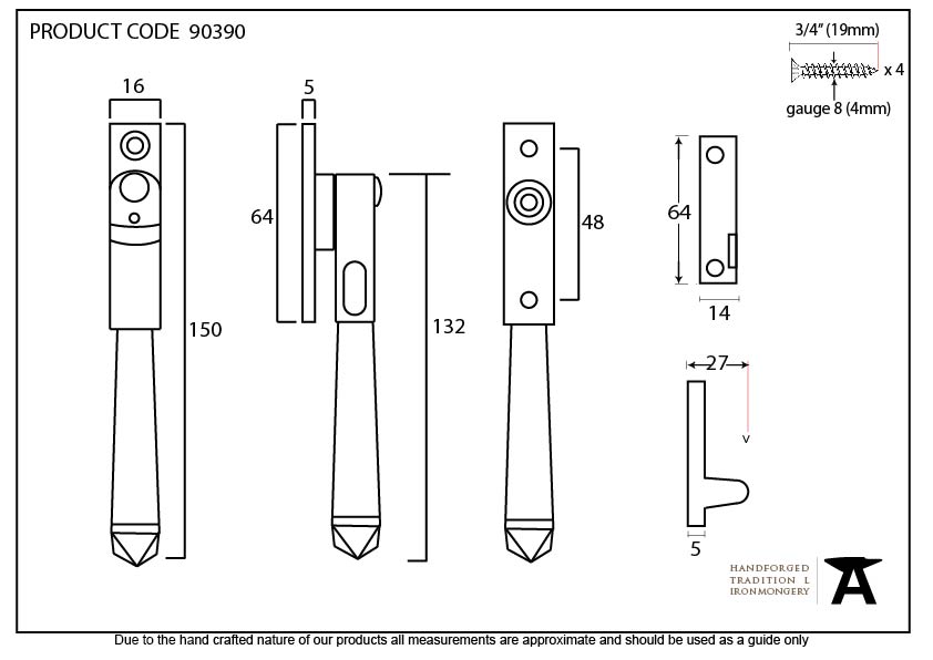 • Fixing plate size: 64mm x 16mm x 5mm