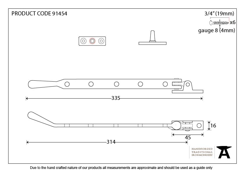Anvil 91454 Polished Chrome 12'' Newbury Casement Stay