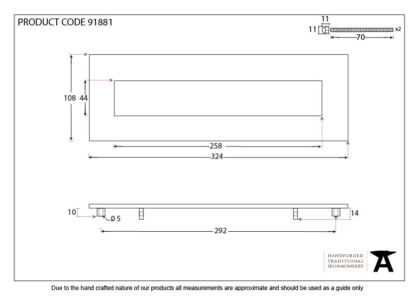 • Opening size: 258mm x 44mm