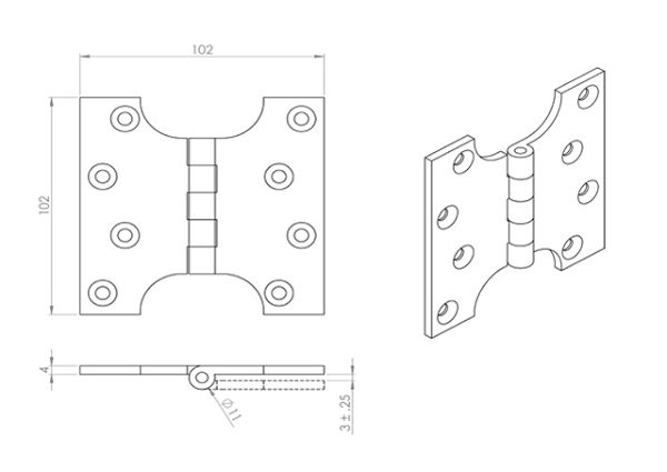 Parliament hinges are designed for doors that need to fold all the way back against the adjacent wall, or in simpler terms, doors that need to open 180 degrees from the closed position. This is achieved by throwing the pivot point of the hinge away from the door frame, so that the door can hinge all the way around without being obstructed. Parliament hinges are intended for lightweight internal doors or cupboard doors. For heavier doors, we recommend using projection hinges. It is common practice to use three hinges per leaf on internal doors. This helps spread the load more evenly and helps to prevent the door from twisting or warping.