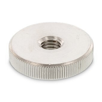 Knurled round nuts are ideal for when tool-free installation is required, or where regular assembly and disassembly by hand will take place. The nuts have a flat round surface with knurled edges, making them easy to grip & tighten/loosen by hand. We stock both low-type and high-type knurled nuts.