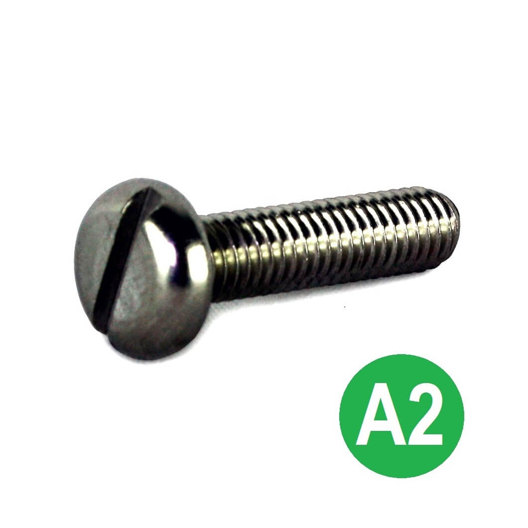 A2 stainless steel slotted pan head machine screws, manufactured to DIN 85 specifications.