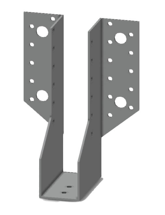 The Simpson SAE hanger is a heavy-duty hanger designed for applications requiring additional strength. The SAE hanger can be installed a variety of header members including timber, steel, masonry & I-Joists. The SAE hanger can be nailed using square twist nails, and it also has bolt holes for fixing into masonry. The hanger depth is to be at least 60% of the carried member depth to prevent rotation, unless additional lateral restraint is added to the top of the carried member.