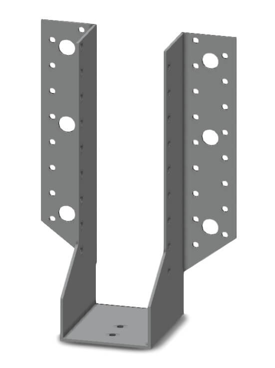 The Simpson SAE hanger is a heavy-duty hanger designed for applications requiring additional strength. The SAE hanger can be installed a variety of header members including timber, steel, masonry & I-Joists. The SAE hanger can be nailed using square twist nails, and it also has bolt holes for fixing into masonry. The hanger depth is to be at least 60% of the carried member depth to prevent rotation, unless additional lateral restraint is added to the top of the carried member.
