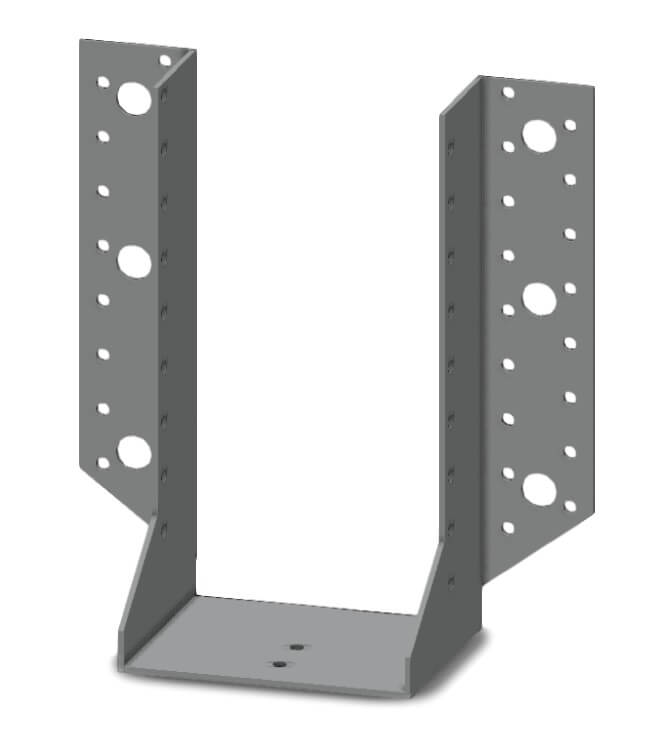The Simpson SAE hanger is a heavy-duty hanger designed for applications requiring additional strength. The SAE hanger can be installed a variety of header members including timber, steel, masonry & I-Joists. The SAE hanger can be nailed using square twist nails, and it also has bolt holes for fixing into masonry. The hanger depth is to be at least 60% of the carried member depth to prevent rotation, unless additional lateral restraint is added to the top of the carried member.