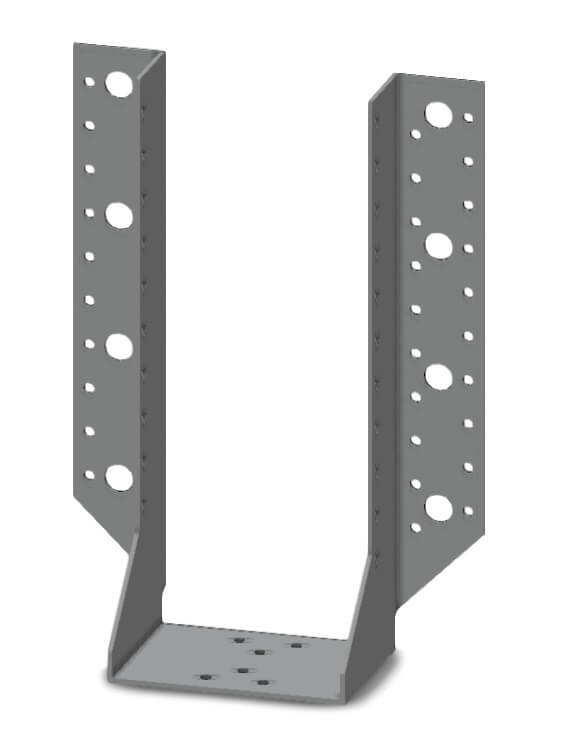 The Simpson SAE hanger is a heavy-duty hanger designed for applications requiring additional strength. The SAE hanger can be installed a variety of header members including timber, steel, masonry & I-Joists. The SAE hanger can be nailed using square twist nails, and it also has bolt holes for fixing into masonry. The hanger depth is to be at least 60% of the carried member depth to prevent rotation, unless additional lateral restraint is added to the top of the carried member.