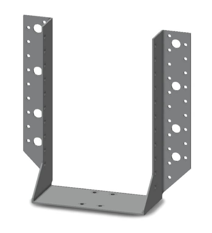 The Simpson SAE hanger is a heavy-duty hanger designed for applications requiring additional strength. The SAE hanger can be installed a variety of header members including timber, steel, masonry & I-Joists. The SAE hanger can be nailed using square twist nails, and it also has bolt holes for fixing into masonry. The hanger depth is to be at least 60% of the carried member depth to prevent rotation, unless additional lateral restraint is added to the top of the carried member.