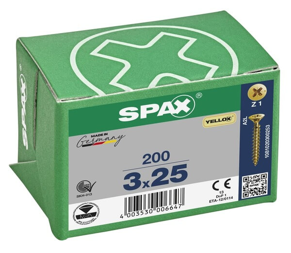 SPAX screws are a symbol of German engineering excellence, proudly manufactured in Germany since 1823. With over 200 years of expertise, SPAX continues to set the standard for professional fasteners. Their innovative "4CUT" point design allows for easy insertion without the need for pre-drilling, reducing wood splitting and increasing work efficiency. This patented feature is especially valuable for builders and traders who need reliable, time-saving solutions on-site.