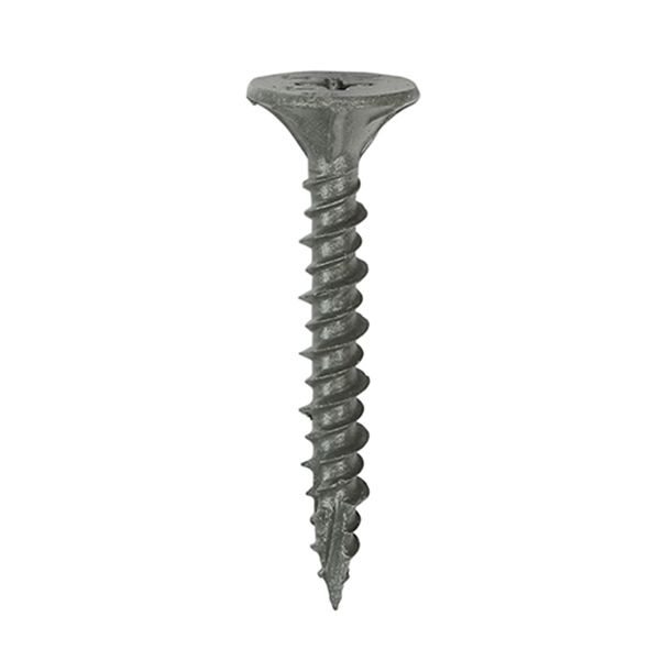 Twin-cut cement board screws, specifically designed for fixing cement-based boards, aka hardie backer board, to timber or steel dry-lining frames (max. 0.6mm). They feature countersinking ribs under the head to ensure a flush finish. The twin-cut point ensures fast pick up & reduces splittage in timber, and it will easily drill through up to 0.6mm steel without the need to pre-drill. These screws have an exterior grade coating (1500 hours salt spray tested) for superior corrosion resistance in damp or corrosive environments, when compared to standard fasteners.