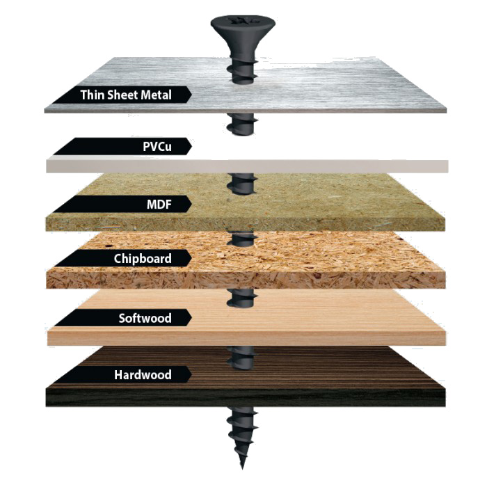 The TIMco Classic Multi-Purpose wood screw has been developed over years to be a reliable multi-use screw than can be used for a variety of applications. The 25° sharp point, special thread design, lubrication and corrosion resistant plating ensures the screw will consistently perform efficiently in hardwood, chipboard, MDF, plastic and thin sheet metal, whilst offering exceptional holding power. The Classic Multi-Purpose screw is one of the most popular screws used in the UK, with over 4.5 billion screws sold each year.