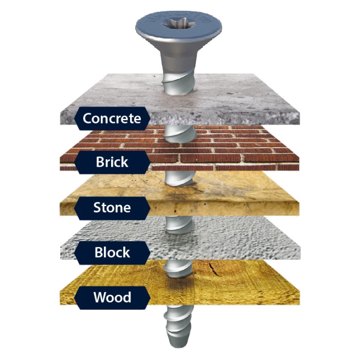 The TIMco Multi-Fix bolt is a heavy-duty non-expansion anchor that has a unique patented concave thread design which taps its own thread and provides rapid, low torque installation with exceptional pull-out resistance. It allows the user to adjust or remove the bolt ensuring a secure and accurate installation. This stress free, non-expansion through fixing is the new solution for heavy duty anchoring into concrete, brick, stone, wood and concrete block replacing the need for traditional anchors such as through bolts, shield, sleeve and drop in anchors.