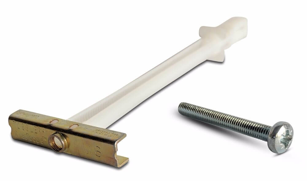 The Toggler Snaptoggle® is arguably the best plasterboard anchor on the market today. The Toggler Snaptoggle mixes extreme pull out resistance and shear strength with simplicity and speed of application. The Snaptoggle can be installed in as little as 10 seconds, and an M6 Snaptoggle can hold 120kg in 12.5mm plasterboard, making it ideal for otherwise tricky applications such as hanging radiators, large flat screen TV's or heavy overhead fittings. The BM5 Snaptoggle has a grip range of 10-92mm through a 13mm hole in the plasterboard, and will accept any M6 threaded fastener.