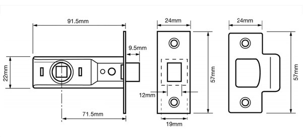 Union J2648 Tubular Mortice Latch 3.5 Silver
